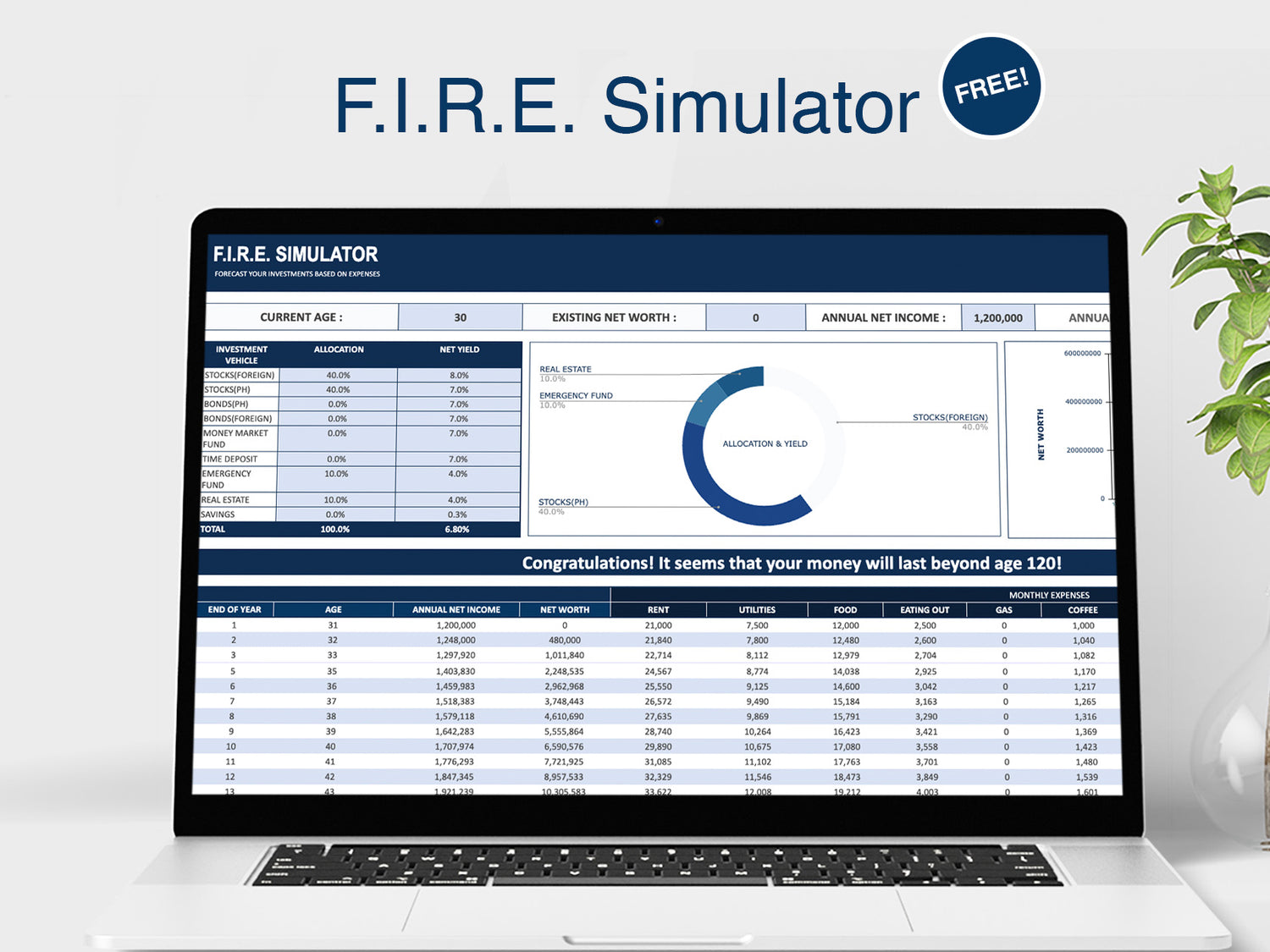 4. FIRE Simulator that provides a realistic projection of your journey towards financial independence, empowering you to take control of your financial future and make strategic choices that accelerate your path to early retirement. (Price alone ₱297.00)